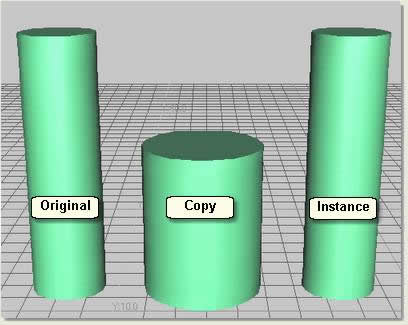 원본 오브젝트의 완전히 대체 가능한 복제본을 생성합니다. 인스턴스의 수정 작업은 원본 오브젝트의 수정 작업과 동일합니다. 오브젝트의 복사(Copy)에 비해 저장 공간 절약, 메모리 절약, 렌더링 시간 절약, 작업시간 절약(한개의 인스턴스 수정은 모든 인스턴스에 반영)등의 장점이있습니다.