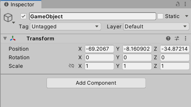 게임 오브젝트는 씬에 존재하는 모든것으로 컴포넌트로 구성되어있습니다(콜라이더, 메시, 사운드, 스프라이트, 사용자정의클래스, 기타) 씬의 게임 오브젝트는 좌표계 어딘가에 존재해야하기때문에 적어도 1개의 트랜스폼(Transform) 컴포넌트 를 가집니다(씬에서 create empty를 사용하여 생성한 게임 오브젝트는 Transform 컴포넌트를 가집니다) Transform 컴포넌트는 position, rotation, scale과 같은 속성을 가지고 게임오브젝트의 위치, 회전, 크기를 정의합니다.