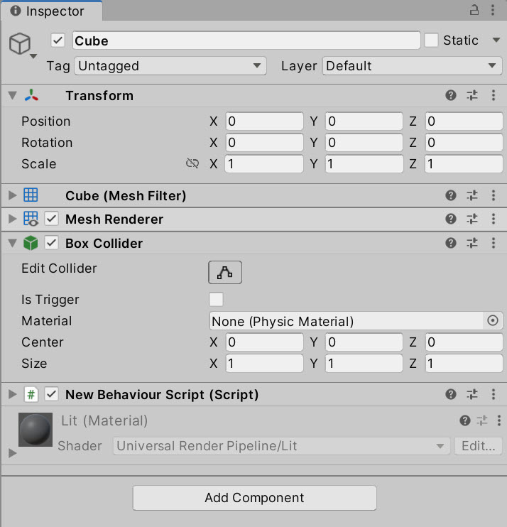게임 오브젝트는 씬에 존재하는 모든것으로 컴포넌트로 구성되어있습니다(콜라이더, 메시, 사운드, 스프라이트, 사용자정의클래스, 기타) 씬의 게임 오브젝트는 좌표계 어딘가에 존재해야하기때문에 적어도 1개의 트랜스폼(Transform) 컴포넌트 를 가집니다(씬에서 create empty를 사용하여 생성한 게임 오브젝트는 Transform 컴포넌트를 가집니다) Transform 컴포넌트는 position, rotation, scale과 같은 속성을 가지고 게임오브젝트의 위치, 회전, 크기를 정의합니다.