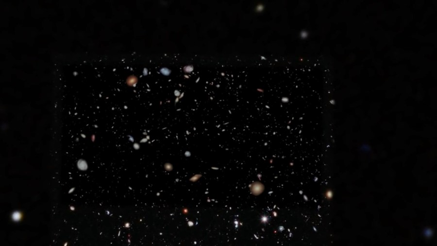 eXtreme Deep Field(XDF)와 허블의 은하계 통과 비행 묘사 영상