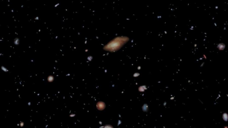 eXtreme Deep Field(XDF)와 허블의 은하계 통과 비행 묘사 영상