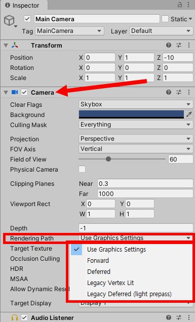 유니티에서 렌더링 패스 설정하기(포워드 렌더링, 디퍼드 렌더링)