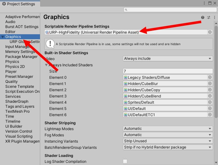 프로젝트 설정의 graphics에서 현재 사용중인 URP 에셋으로 이동합니다(Universal render pipeline asset)
