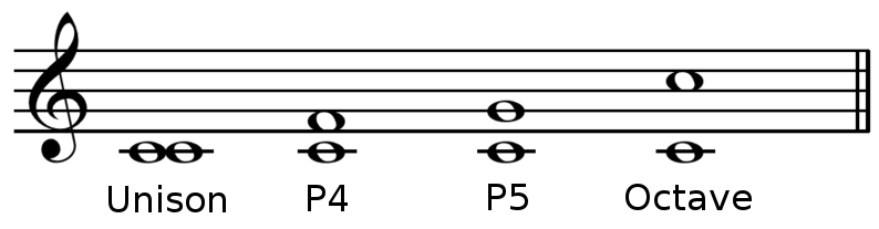 1도(유니슨, 프라임), 4도, 5도, 8도(옥타브)