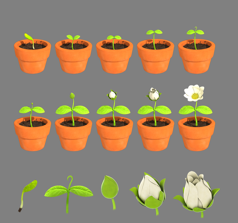 3D MAYA의 블렌드쉐잎(blend shape)을 사용하여 제작한 피는 꽃 애니메이션