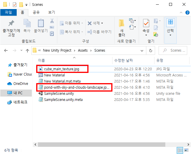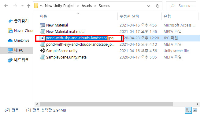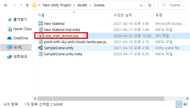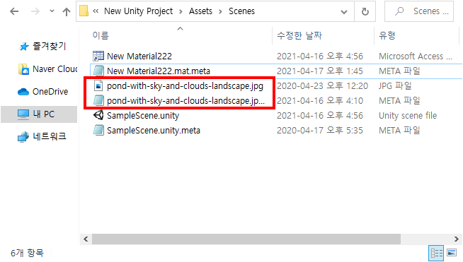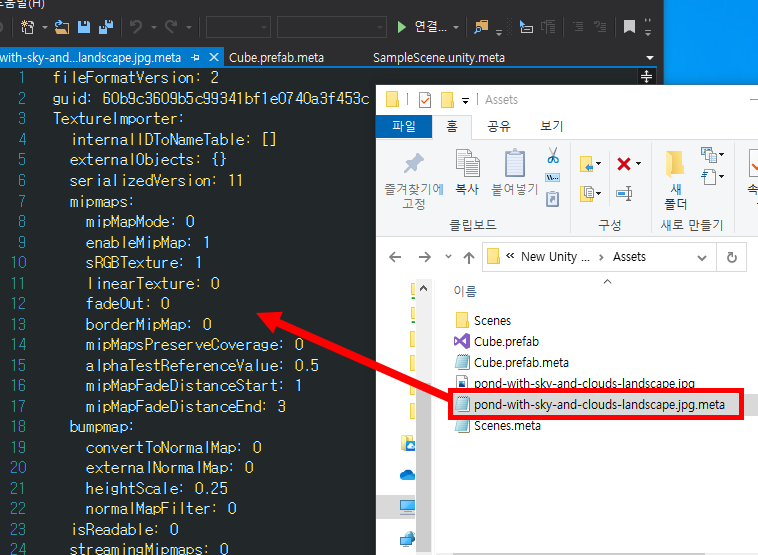7)윈도우 탐색기에서 텍스처 파일과 이 에셋에 대응하는 메타파일을 확인할수있다.