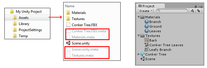 유니티 에디터에서 어셋의 위치를 이동시키거나 이름을 변경하면 유니티는 자동적으로 어셋에 대응하는 메타파일의 위치, 이름을 변경한다. 하지만 만약 윈도우 탐색기와 같이 유니티 외부에서 어셋의 위치를 이동시키거나 이름을 변경하면 유니티는 해당 에셋에 대한 기존의 메타파일을 제거하고 새로운 메타파일을 생성한다.