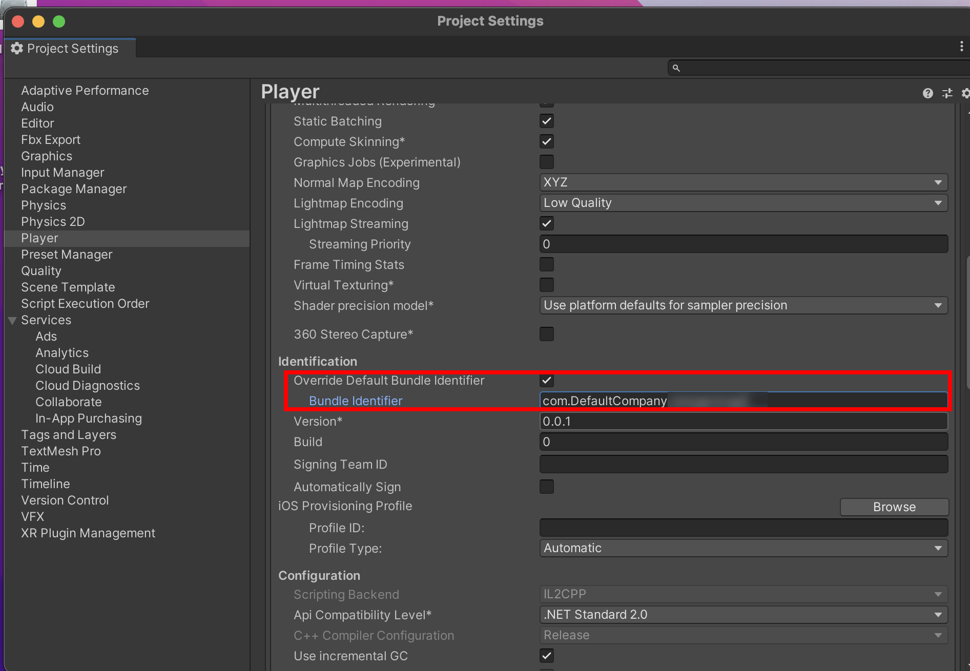 4)Identification에서 Bundle Identifier를 확인합니다.