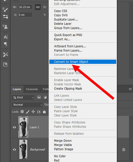 3)복사한 레이어를 선택 및 마우스 우클릭하고 convert to smart object를 선택하여 스마트오브젝트로 변환합니다.