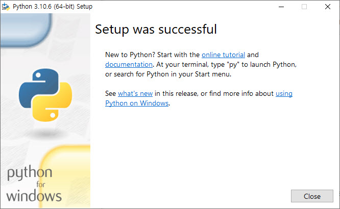 4)파이썬 설치를 완료된것을 확인할수있습니다.