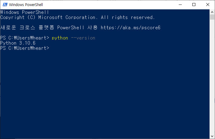 8)파이썬이 정상적으로 설치되었으며 설치된 파이썬의 버전을 확인할수있습니다.