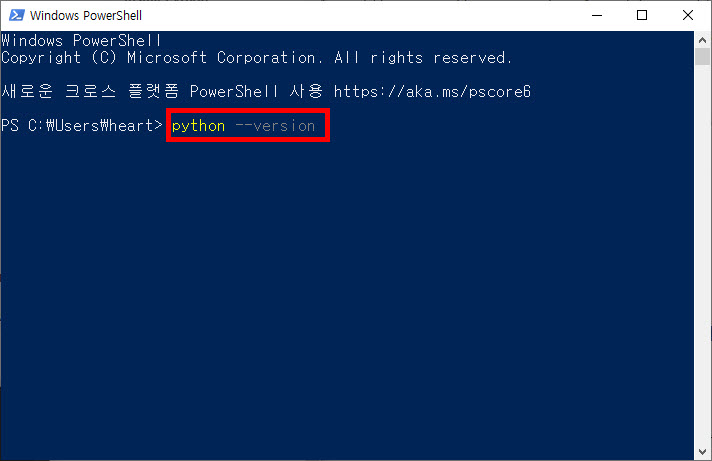 7)python --version을 입력합니다.