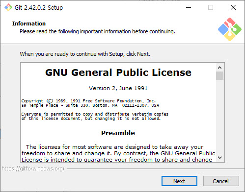 4)설치 프로그램 에서 기본 설정으로 깃(Git) 설치를 진행합니다.