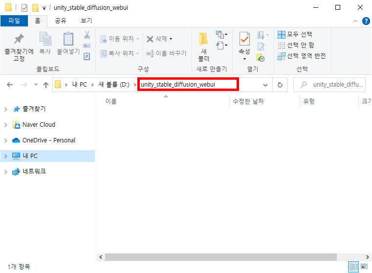 1)Stable Diffusion webUI를 설치할 폴더를 생성하고 사용자 이름을 설정합니다.