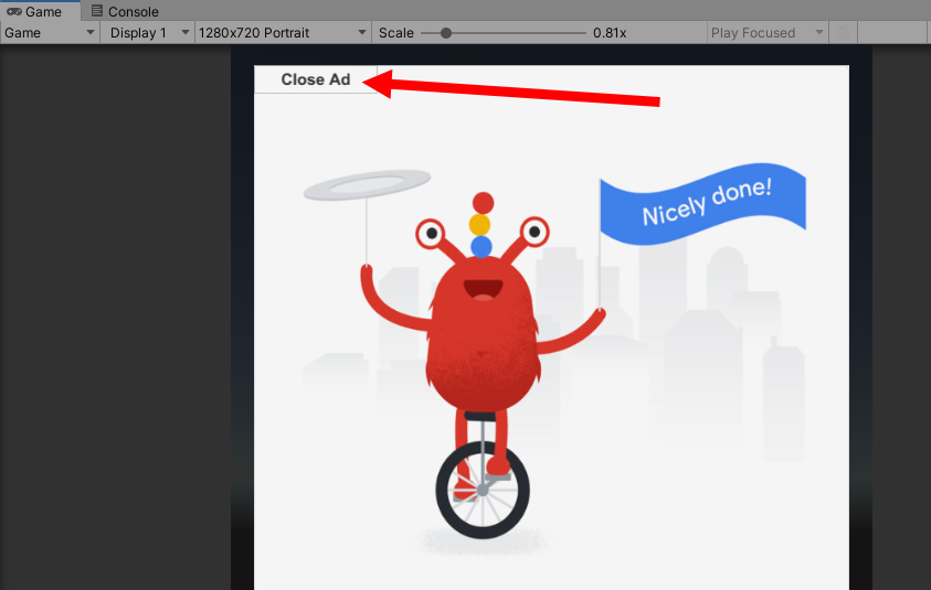 21)시간 이후에 활성화된 광고 닫기(close ad) 버튼을 클릭합니다.
