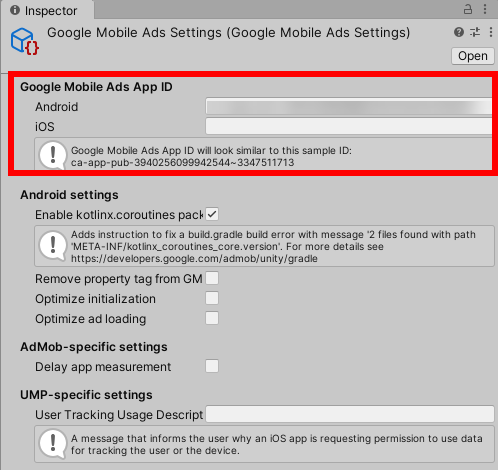 유니티에서 구글 모바일 광고 앱 ID 설정