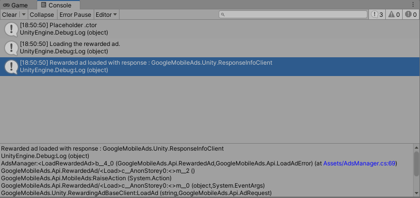 20)리워드 광고(rewarded ad)를 정상적으로 로드한것을 확인할수있습니다.