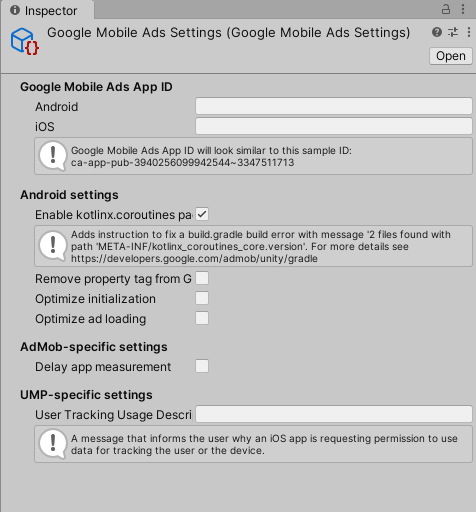 유니티에서 구글 모바일 광고 앱 ID 설정