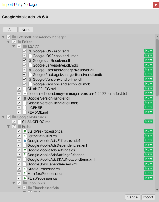 유니티에서 구글 모바일 광고 플러그인 가져오기(import)