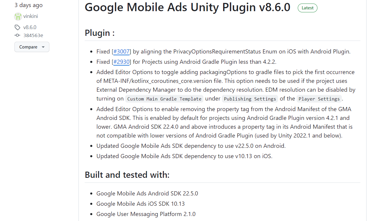 https://github.com/googleads/googleads-mobile-unity/releases/tag/v8.6.0