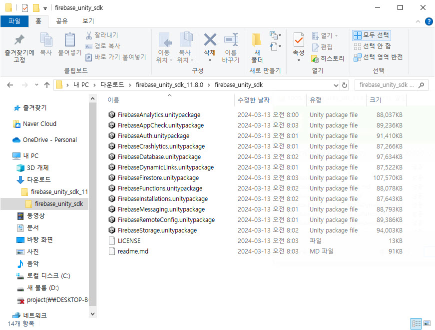 13)다운로드한 SDK를 확인합니다. 파이어베이스가 제공하는 다양한 종류의 SDK를 확인할수있으며 필요한 SDK를 프로젝트로 가져오기할수있습니다.