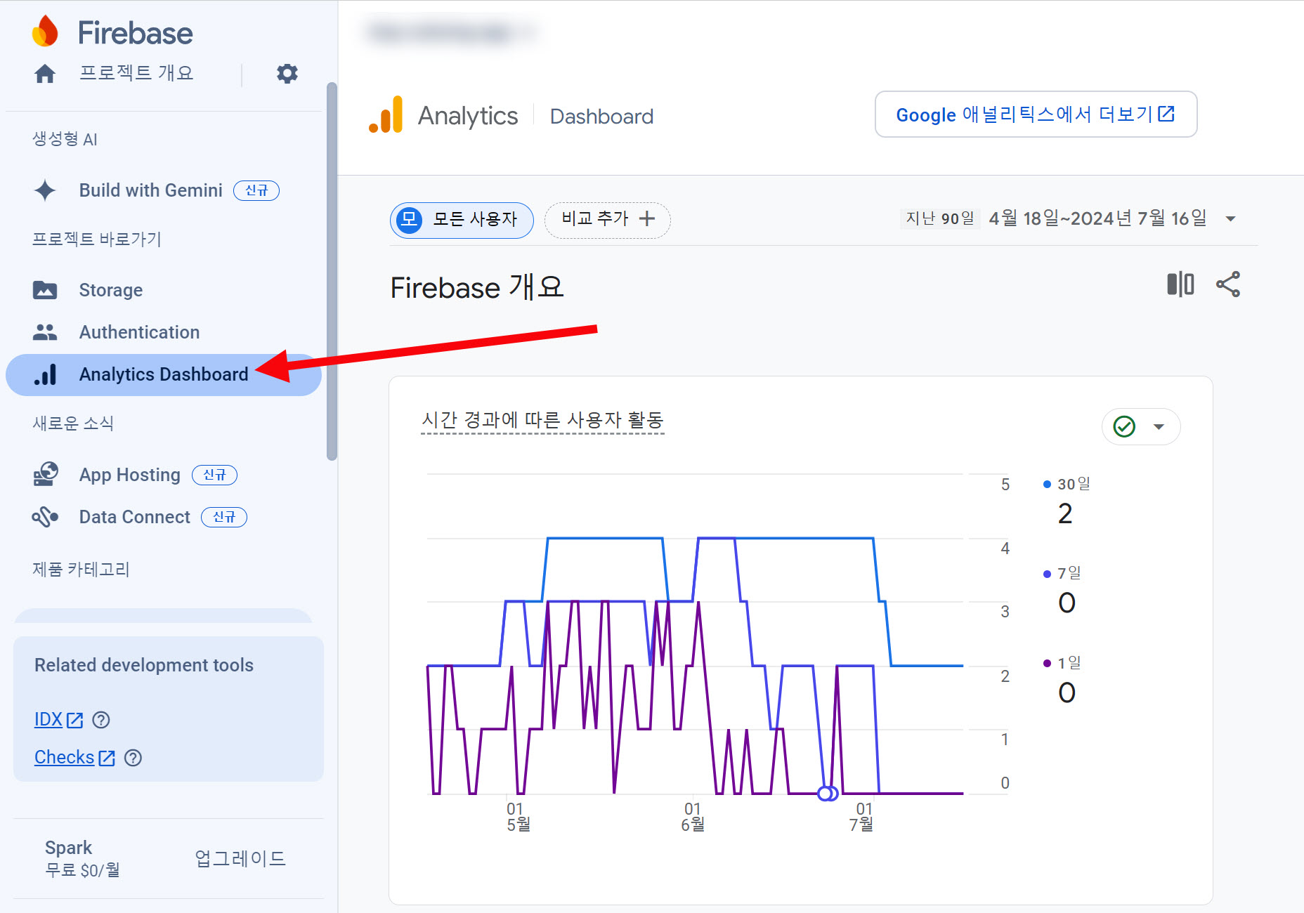 18)파이어베이스 콘솔의 Analytics 대시보드 메뉴에서 앱 사용자 활동에대한 분석과 통계를 확인할수있습니다.