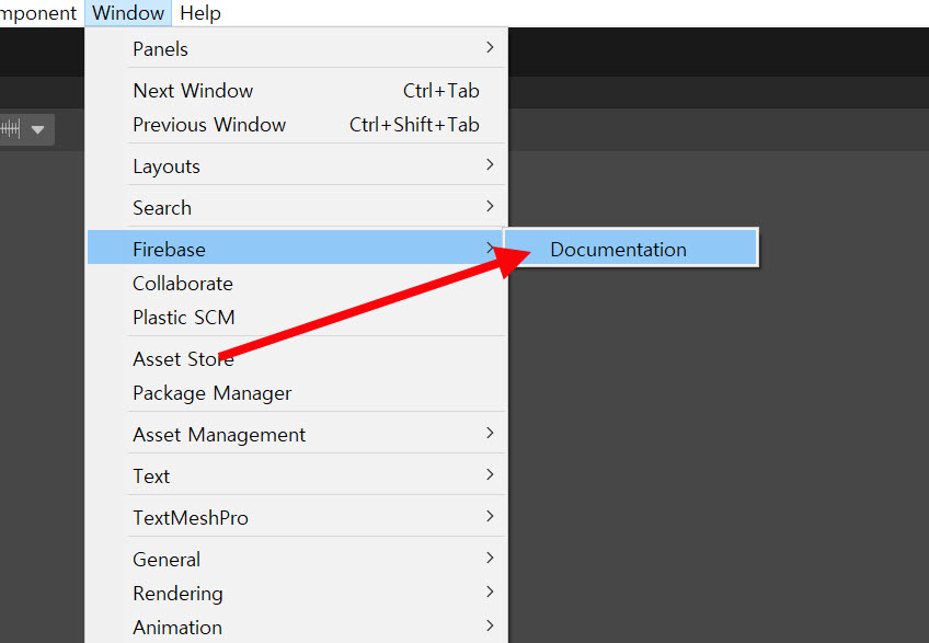 16)정상적으로 설치가완료되면 상단의 윈도우 메뉴에서 Firebase 메뉴를 확인할수있으며 SDK를 사용할준비가된것입니다.