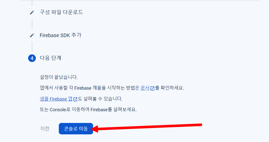 12)모든 설정을 마치고 콘솔로 이동을 클릭합니다.
