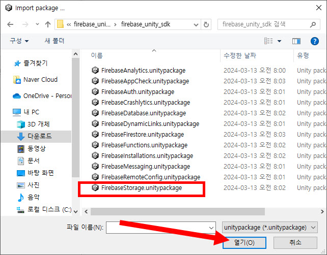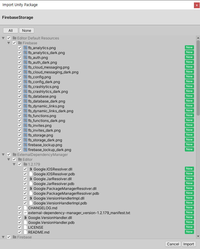 6)유니티 프로젝트에 FirebaseStorage SDK를 가져오기하면 Storage SDK를 사용할 준비가 된것입니다.