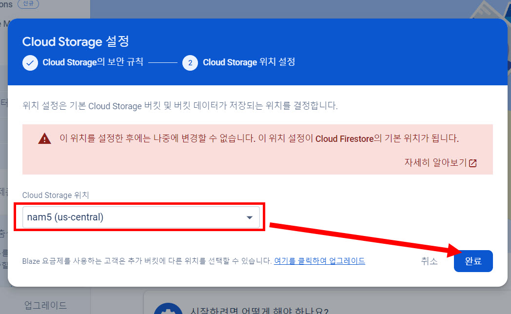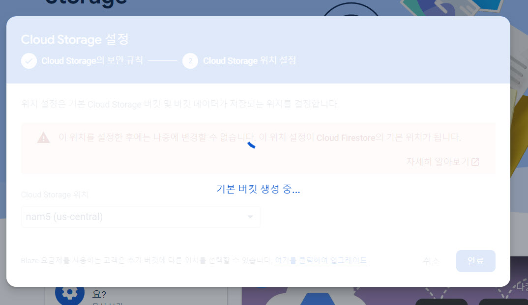 4)기본 클라우드 저장소의 버킷 저장 위치를 설정하고 완료합니다.