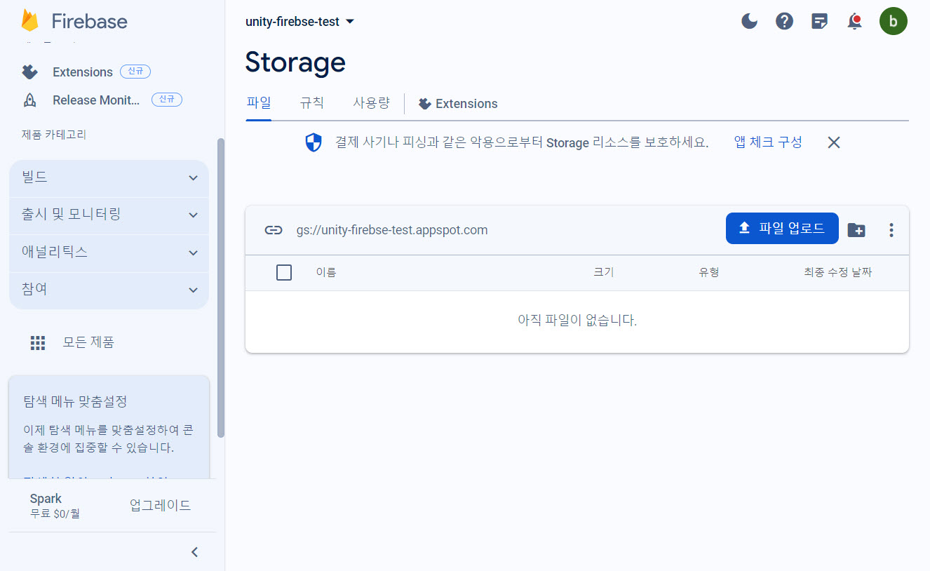 유니티(unity)에서 파이어베이스 Cloud Storage(클라우드 저장소) 사용하기