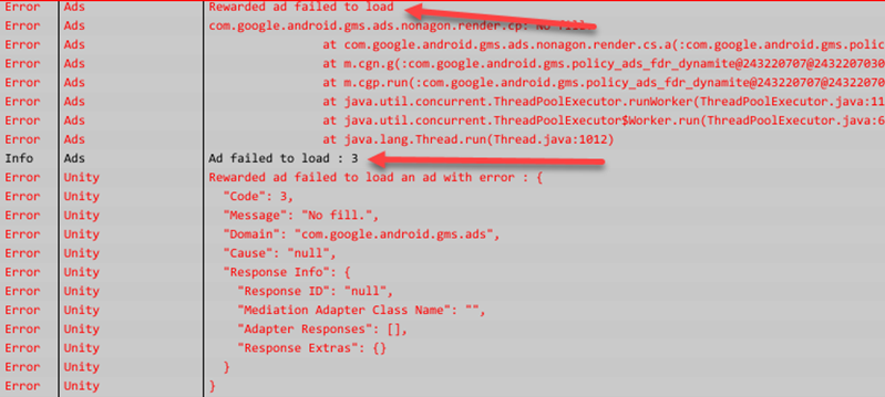 AdMob Error Codes & Logs - Google AdMob 커뮤니티