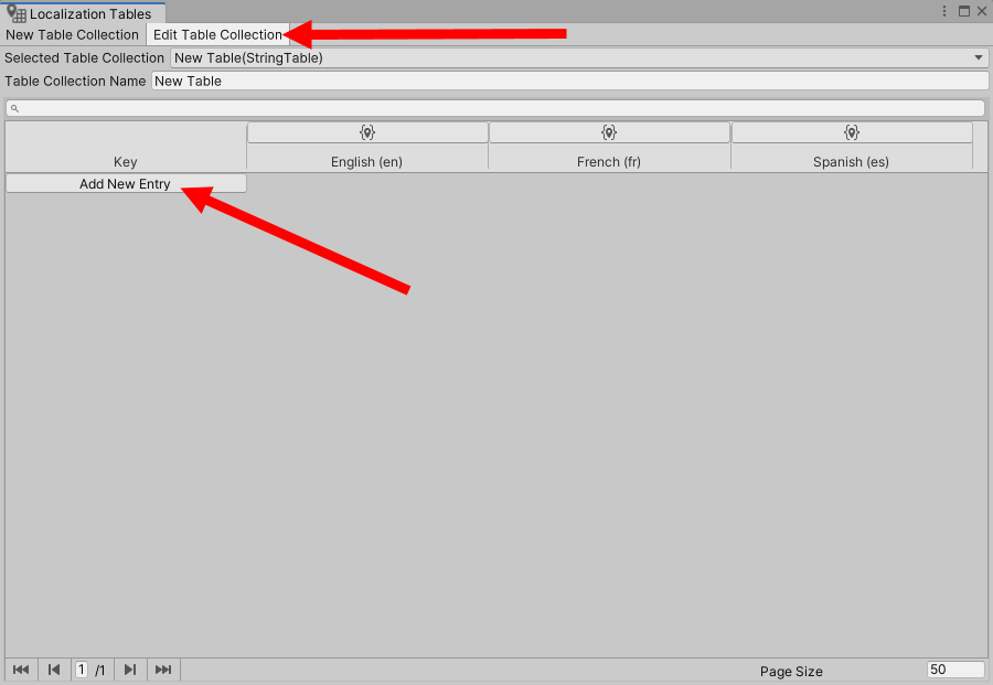 9)생성한 테이블을 편집하려면 Edit Table Collection를 선택합니다. add new entry를 클릭하여 새로운 키를 생성합니다.