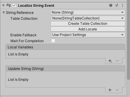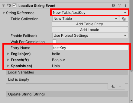 15)Localize String Event의 String Reference에서 이전에 생성한 문자열 테이블 및 키를 선택합니다.
