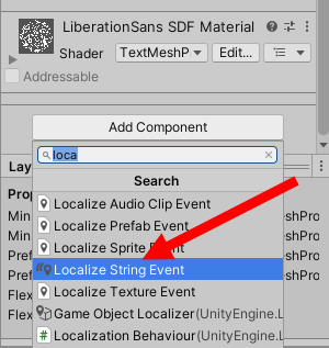 14)게임 오브젝트에 Localize String Event 컴포넌트를 추가합니다.