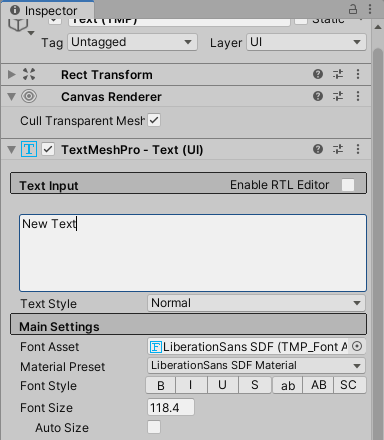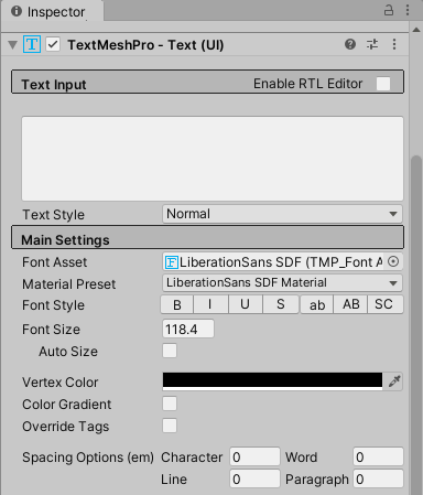 13)TextMeshPro의 입력 텍스트(Text Input)를 공백으로 설정합니다.
