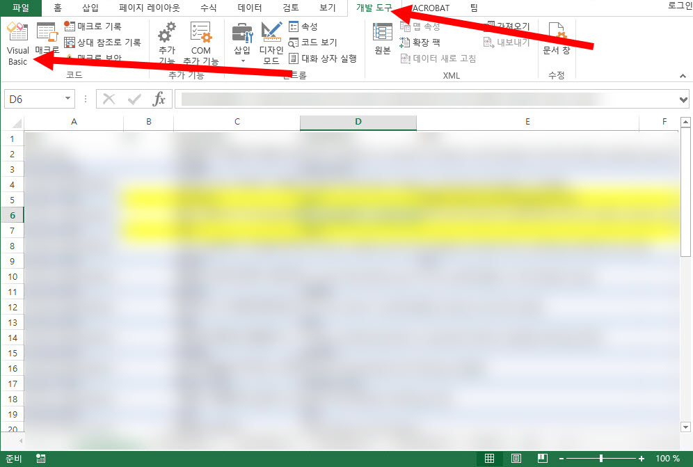 엑셀(exel)에서 비주얼 베이직(visual basic) 열기