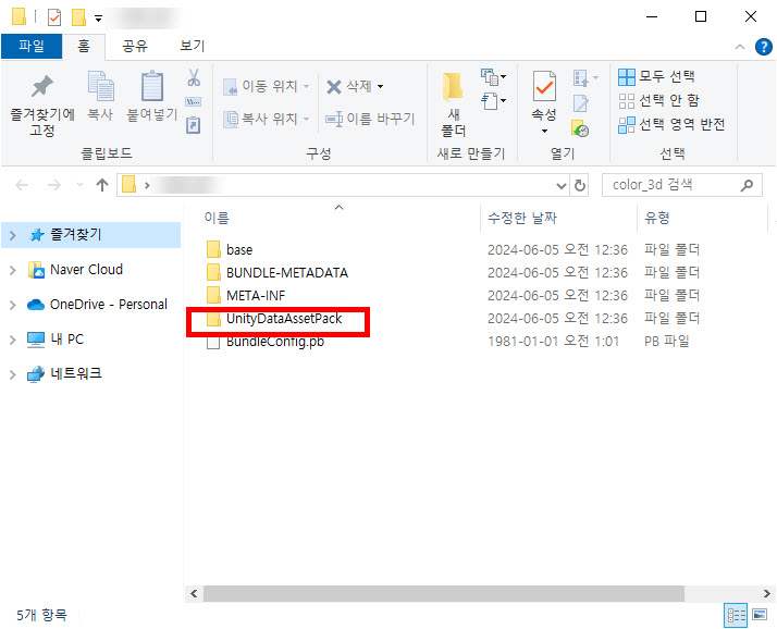 7)압축풀기한 폴더에서 새로운 폴더를 확인할수있습니다(UnityDataAssetPack)