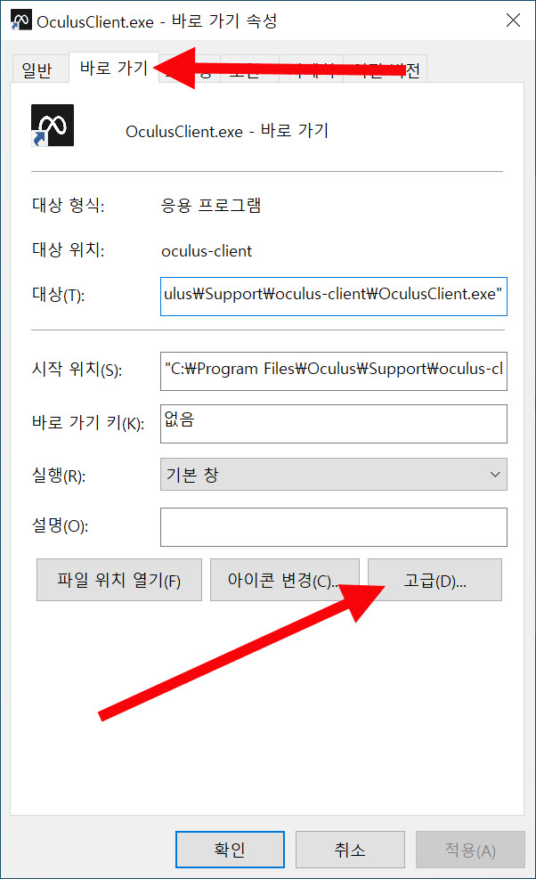 윈도우10 프로그램의 바로가기를 관리자 권한 실행으로 설정하기