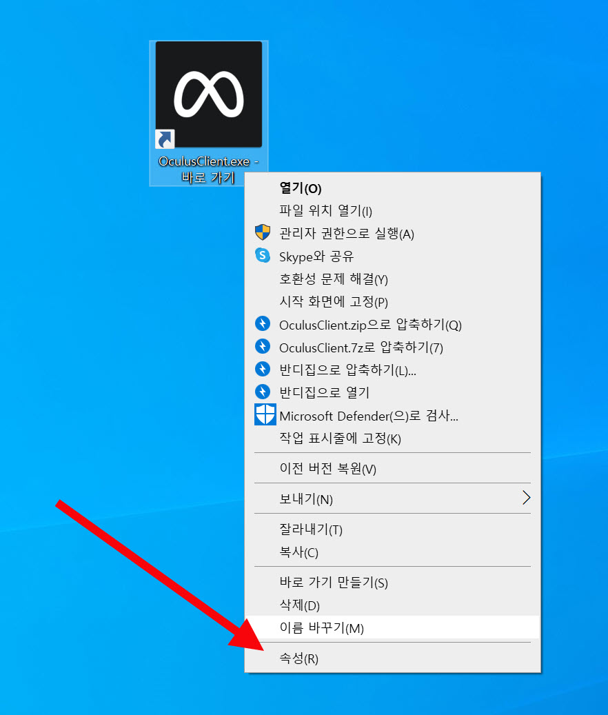 1)프로그램의 바로가기를 마우스 우클릭하고 속성으로 이동합니다.
