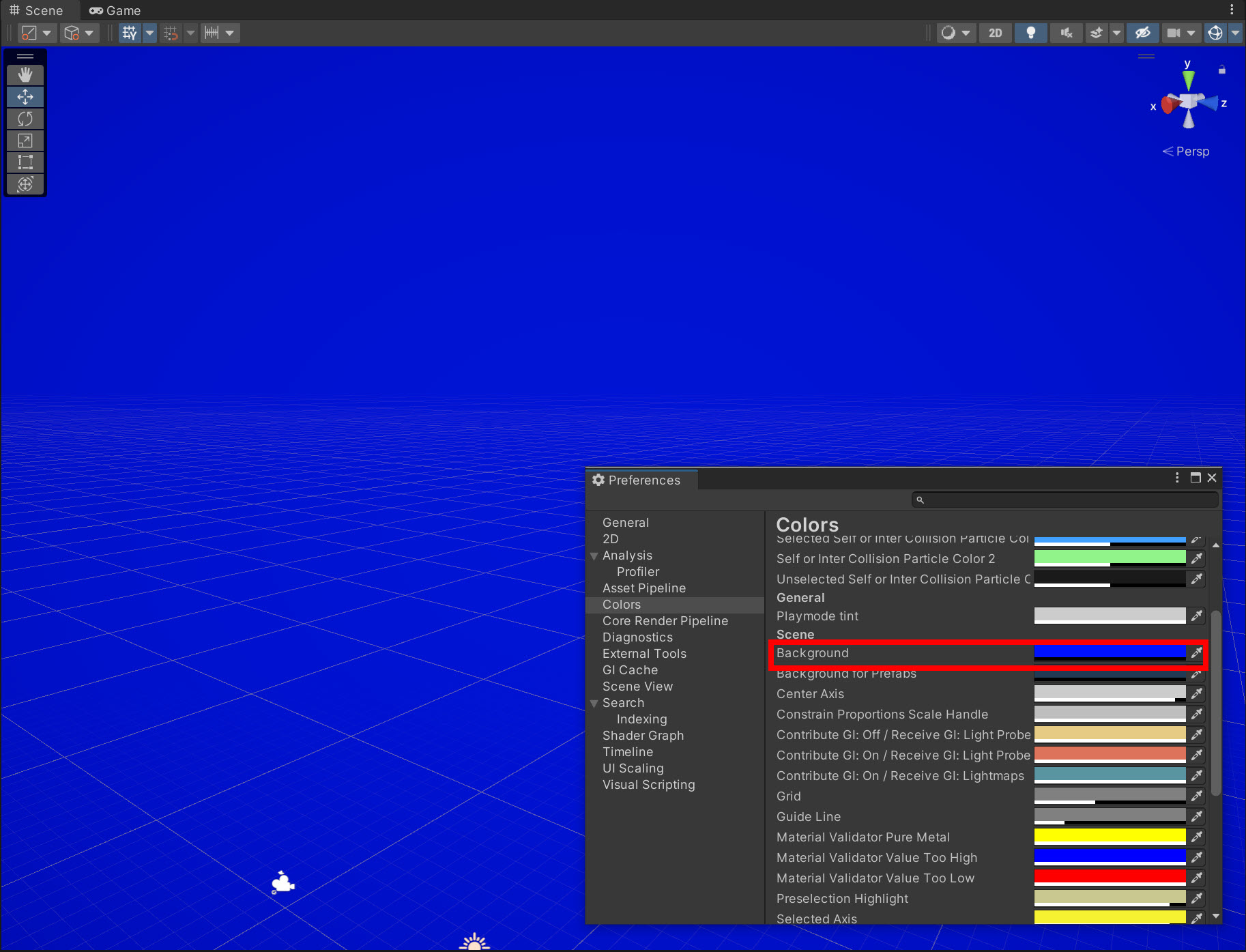 5)Colors에서 씬(scene)의 background 색상을 변경합니다.