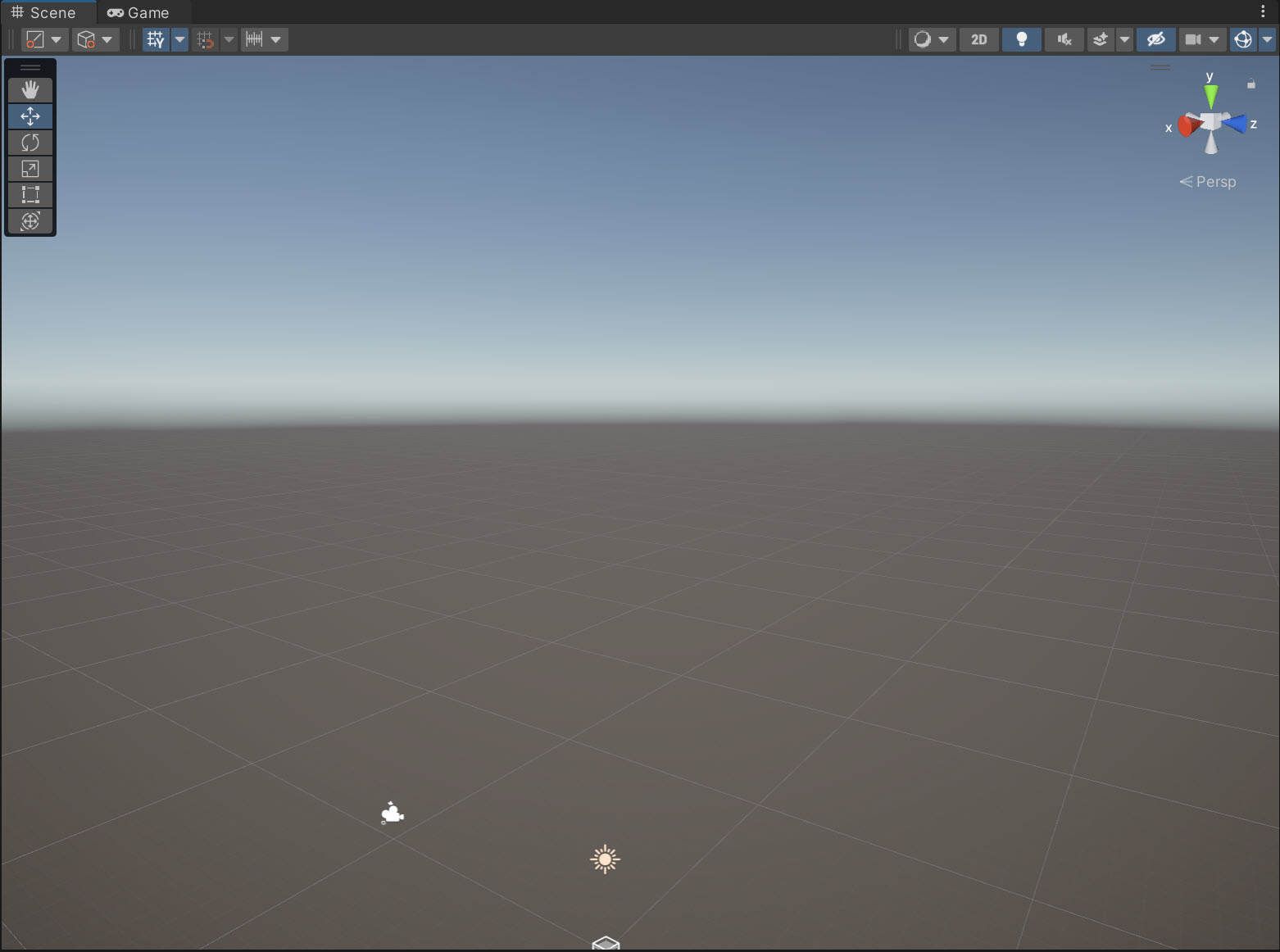 1)예에서 프로젝트의 씬에 기본 스카이박스 재질이 사용 및 표시되는것을 확인할수있습니다.