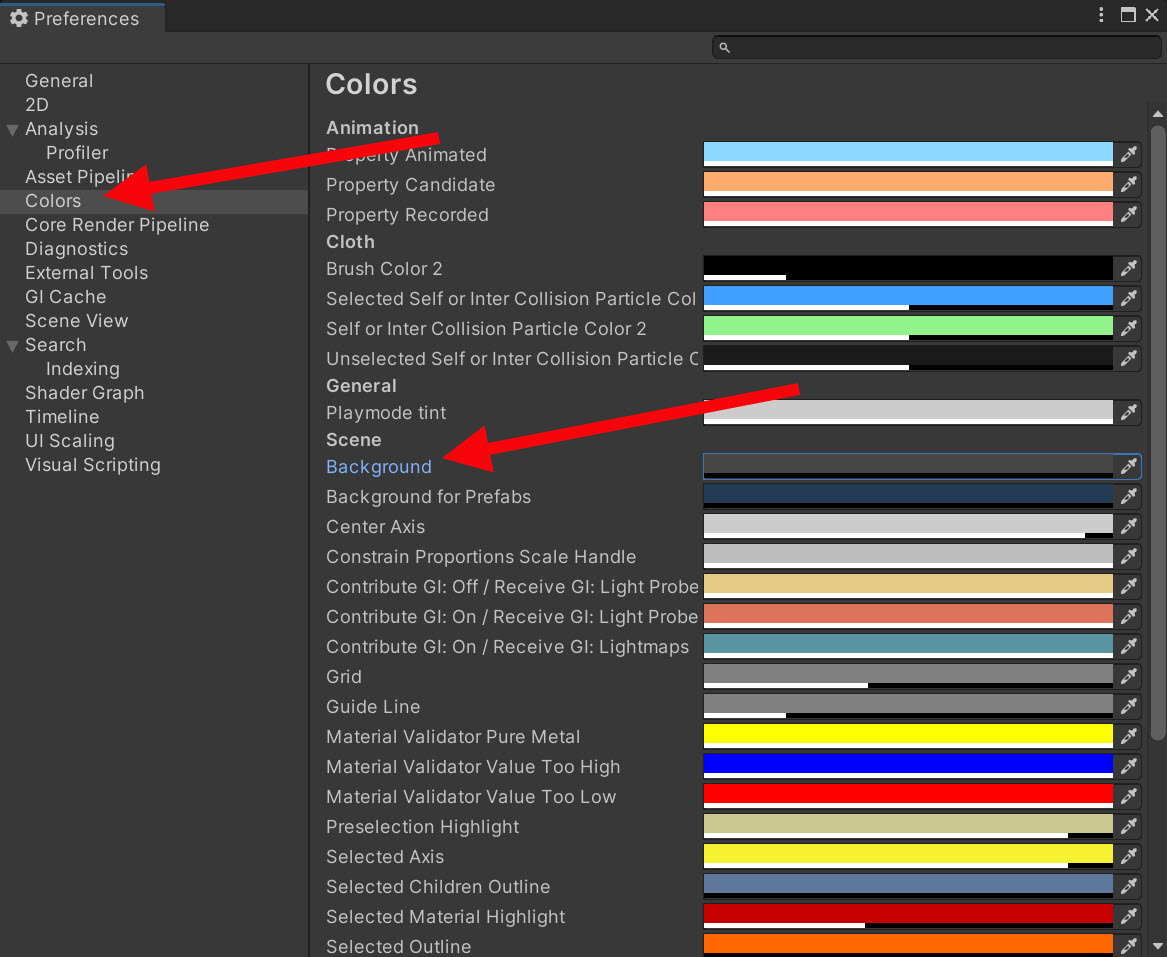 5)Colors에서 씬(scene)의 background 색상을 변경합니다.