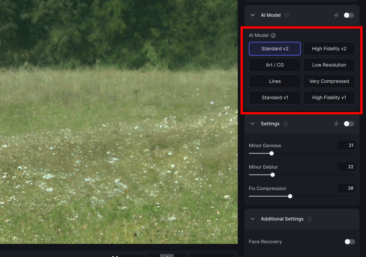 6)AI Model에서 업스케일링에 사용할 모델을 선택합니다.