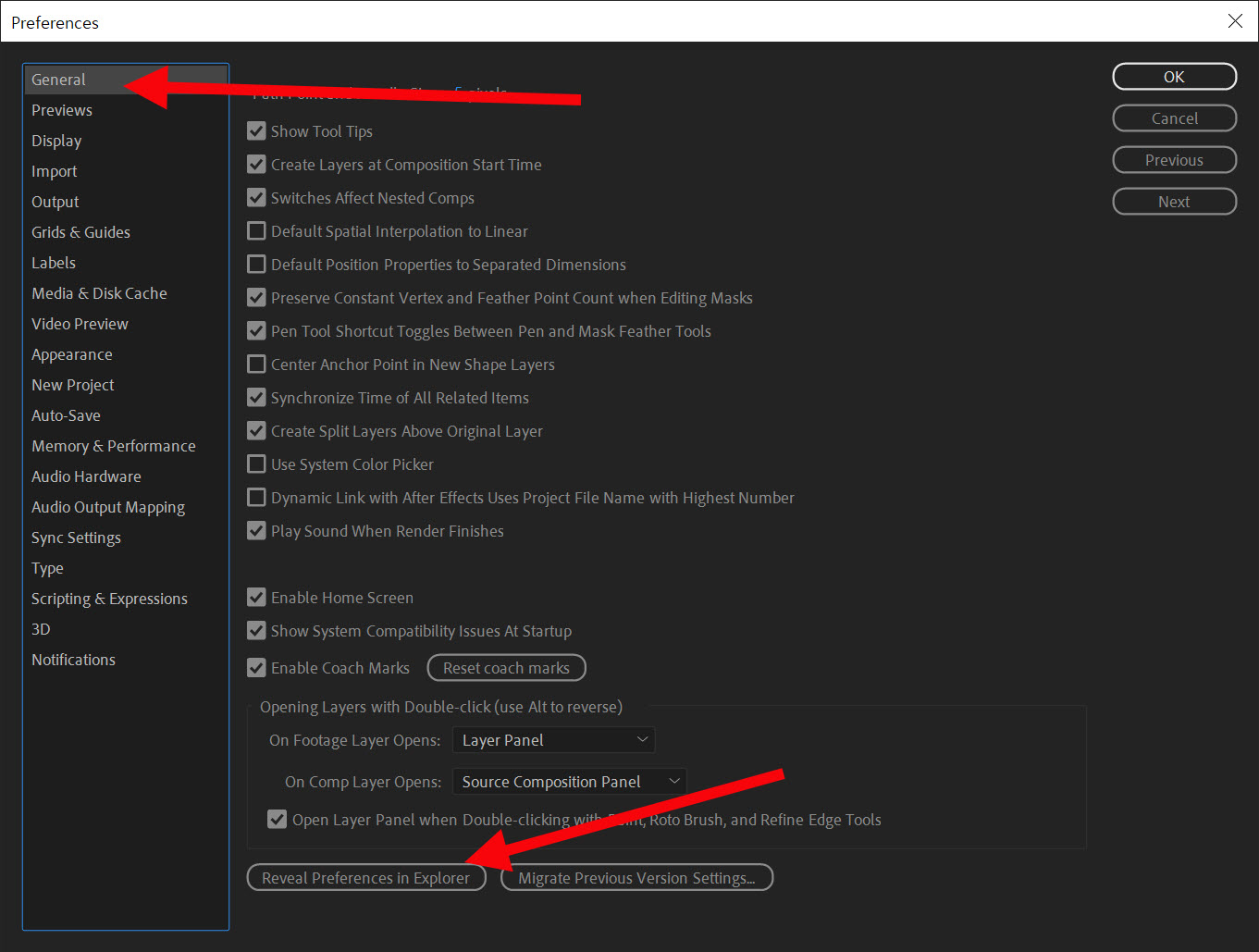 에프터이펙트(after effects) 환경설정(preferences) 초기화하기