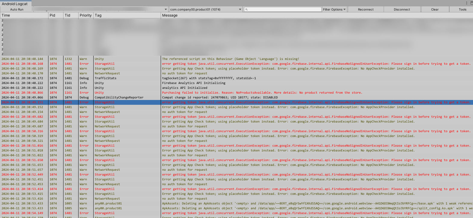 1)안드로이드 로그캣에서 다음과 같은 오류를 표시합니다(please sign in before trying to get a token)