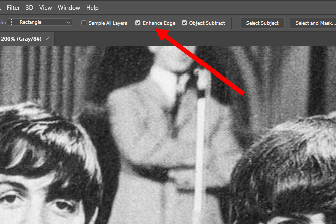 6)상단의 engance edge에 체크하고 클릭 드래그하여 사람 얼굴 영역을 선택합니다.