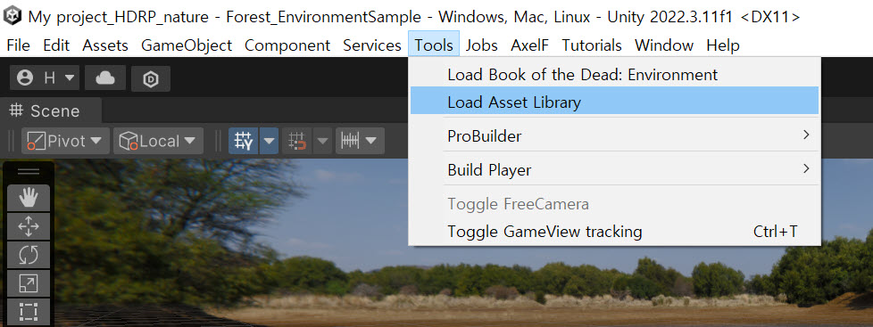 2)상단의 Tools 메뉴에서 Load Asset Library를 선택합니다.