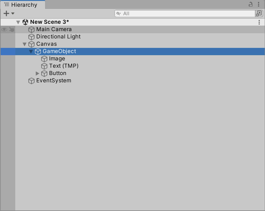 1)씬에 다수의 UI 오브젝트를 구성합니다(이미지, 버튼, 텍스트)