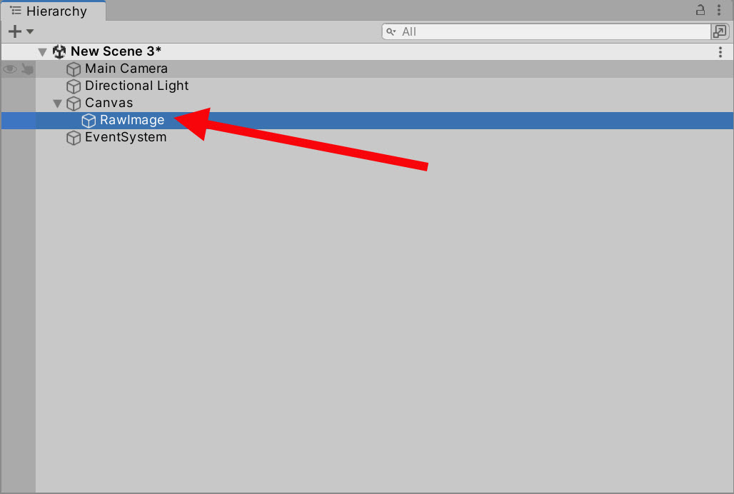 3)씬에 Raw Image 오브젝트를 생성합니다.
